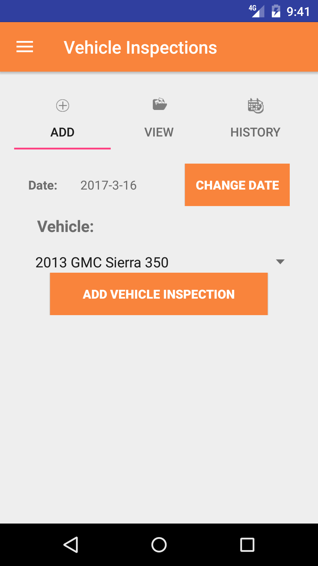 - Tap the Add Vehicle Inspection button to add the Vehicle Inspection.