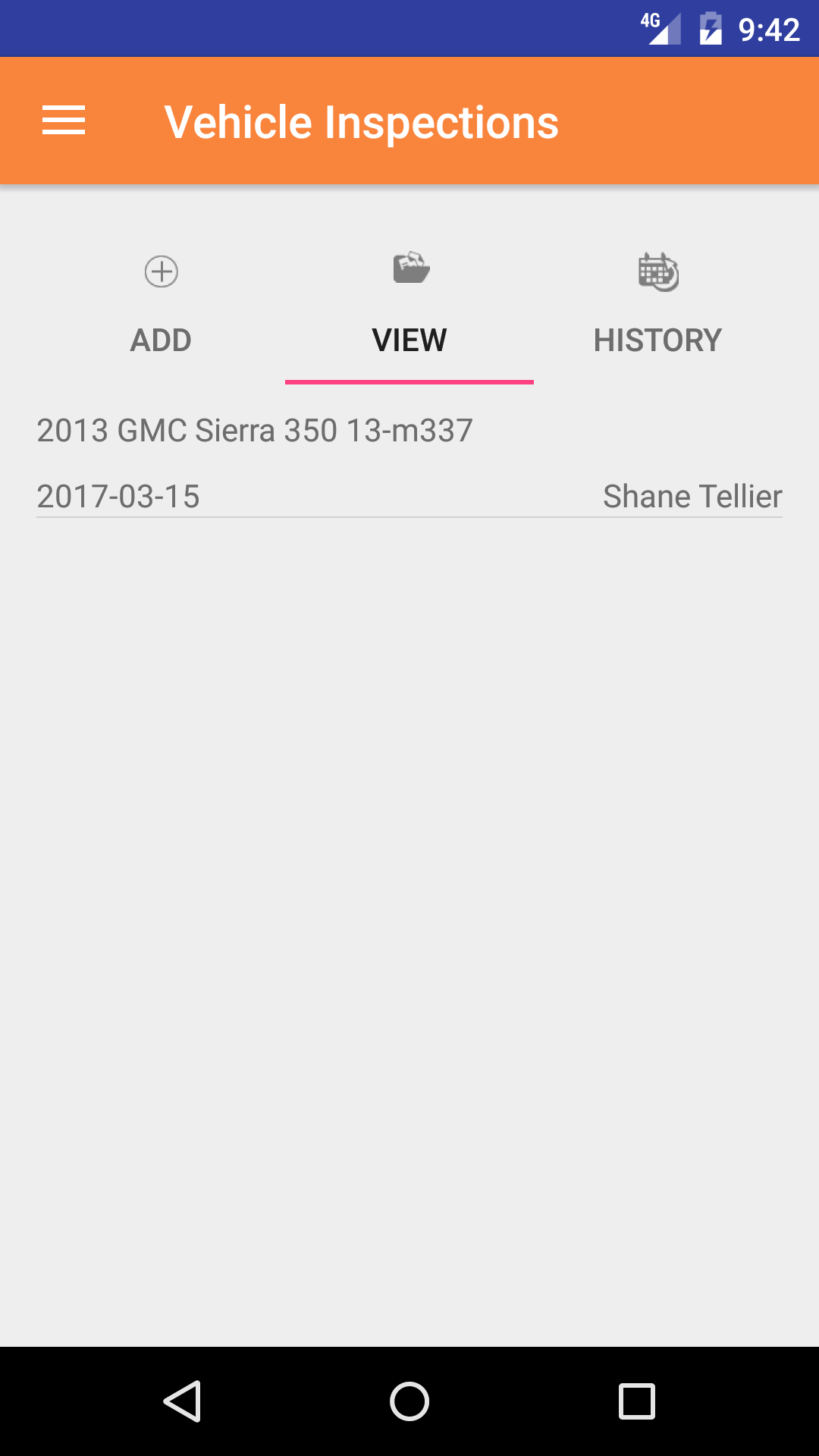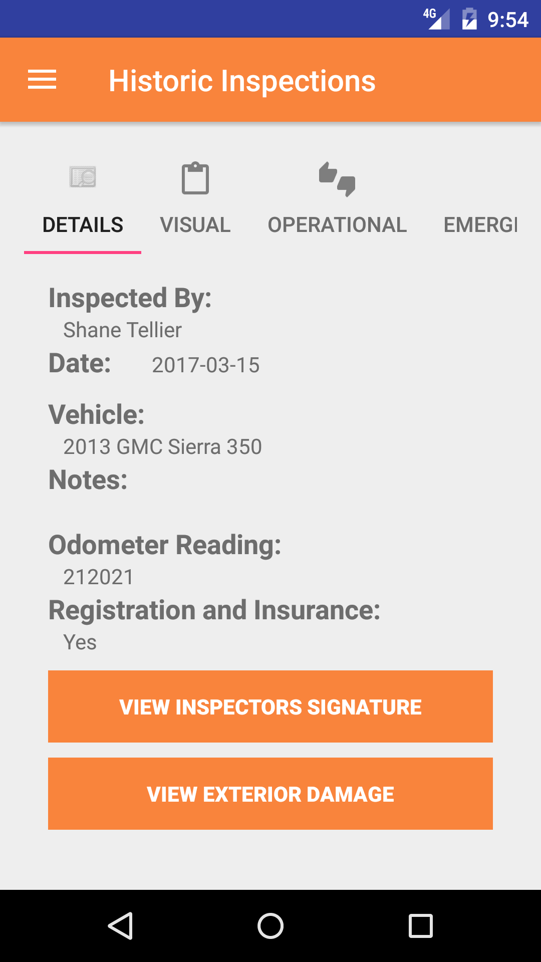 - Tap on the Vehicle Inspection you would like to view. This loads the first tab, the Vehicle Inspection details tab of the History view.