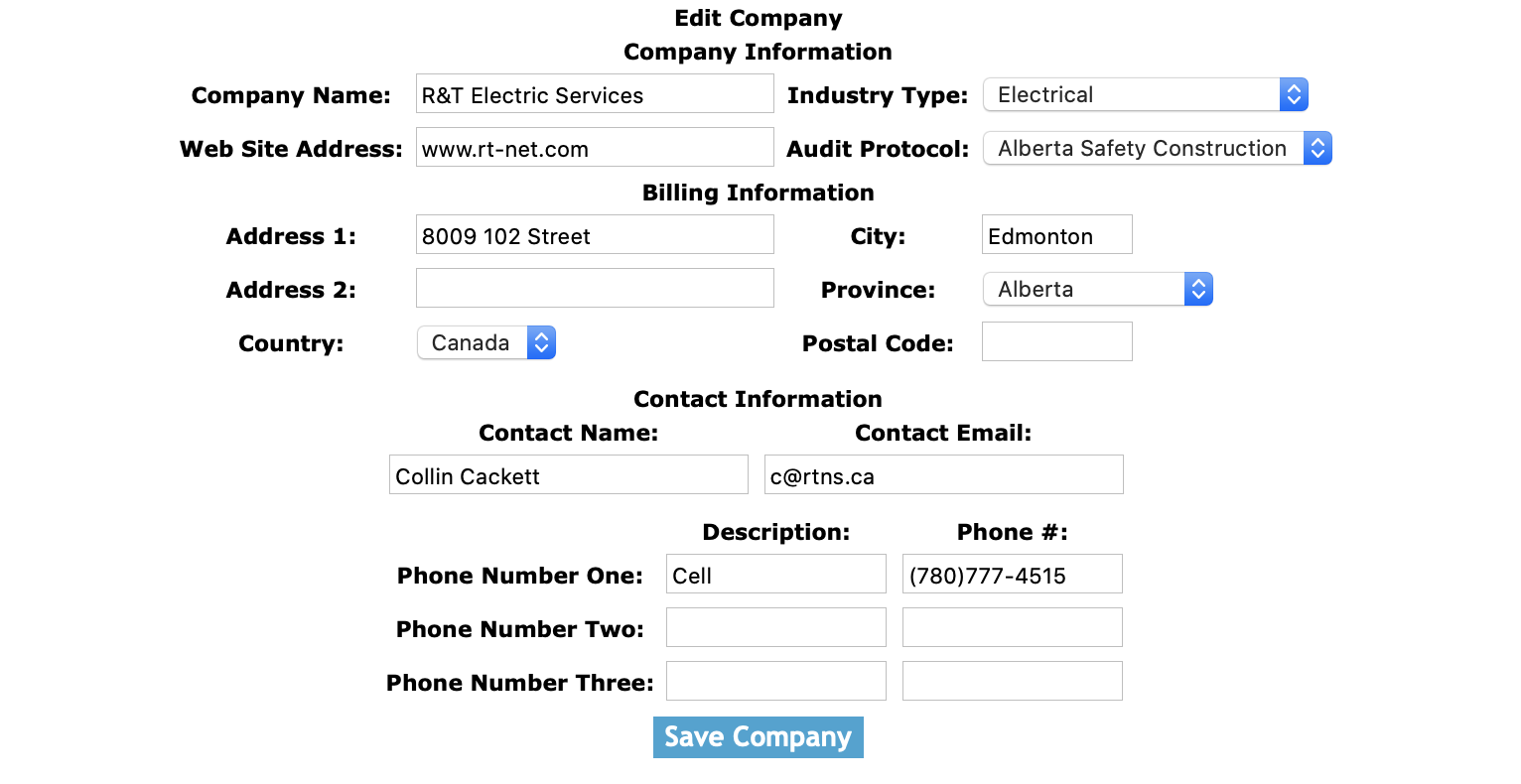 Click 'Save Company Safety Settings' button, to save the company safety settings.