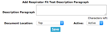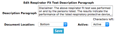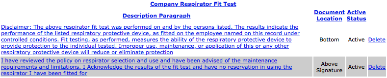 that will be displayed on the respirator fit test form. SafetyNet allows these paragraphs to be added in three locations on the
