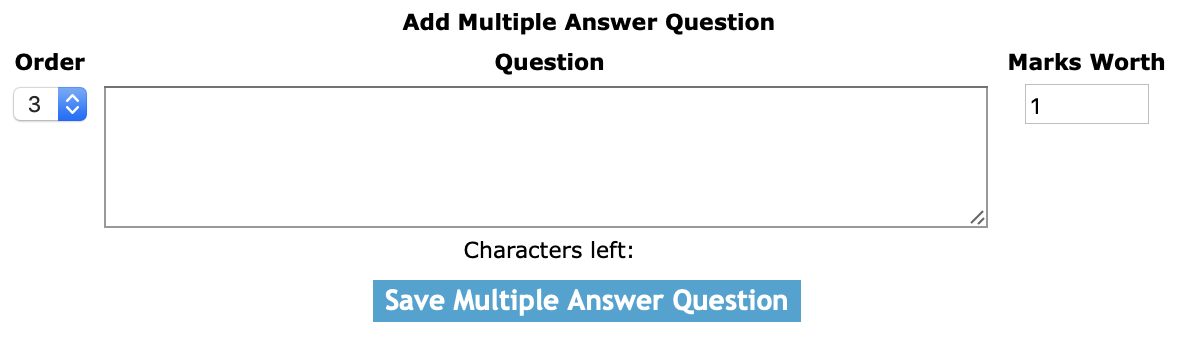 Marks Worth: The marks worth field allows users to set the number of marks a question is work. This value is a numeric value.