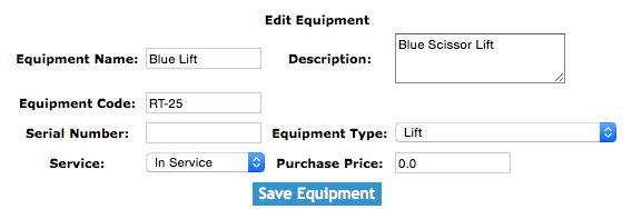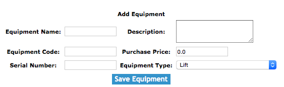 The equipment section allows clients to create and track the equipment of their company.