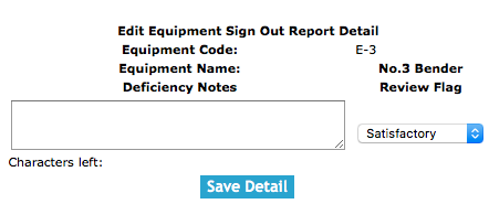 Deficiency Notes: Allows the user to input deficiency notes of the equipment signed out. If