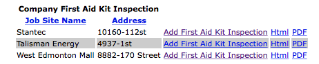 To view the html version of the company first aid kit inspection: click on the html link on the record line.