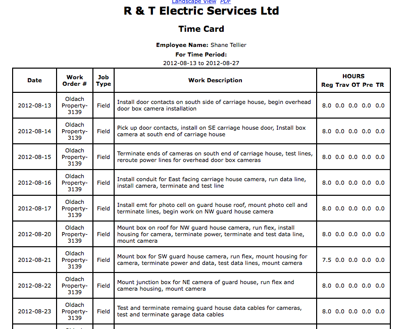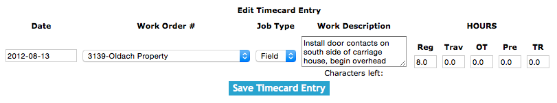 a field marking the time spent working as either field work or shop time. The time entered can be