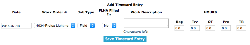 a field marking the time spent working as either field work or shop time. The time entered can be