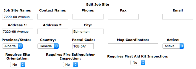 Requires Fire Extinguisher Inspection: Choose from the select box either Yes or No. Yes will mean that a company will require field staff