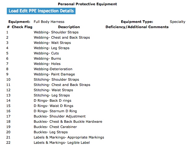 Safetynet allows a your companies staff to setup a specific personal protective equipment inspection for personal protective equipment your company use, personal protective equipment inspections can be created from default equipment inspections.
