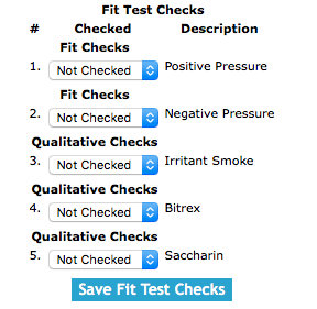 On a Respirator Fit Test there are 2 sections of lists that companies must maintain. They are Fit Test Checks and Fit Test Conditions. These two sections make up the