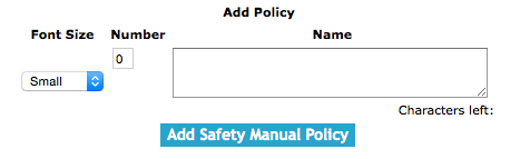To add a Safety Policy, click on the 'Add Safety Manual Policy' link.
