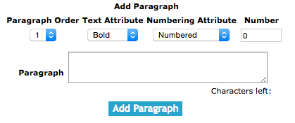 Numbering Attribute The numbering attribute select box allows users to number the paragraphs or not number the paragraphs.