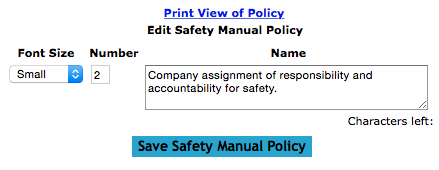 Click the 'Save Safety Manual Policy' button to edit a policy.