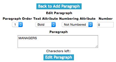 can be formatted either bold or non bold, and numbered or not numbered. The order of which the paragraphs will appear
