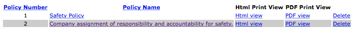 To delete a Safety Policy, click on the delete link of the safety policy that you would like to delete.