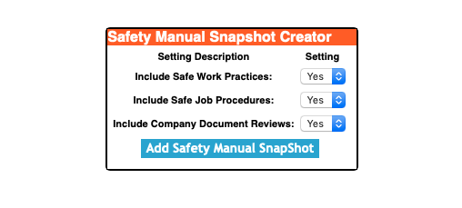 Management, Office Staff and Safety Officers can now save a Safety Manual Snapshot. A Safety Manual Snapshot allows