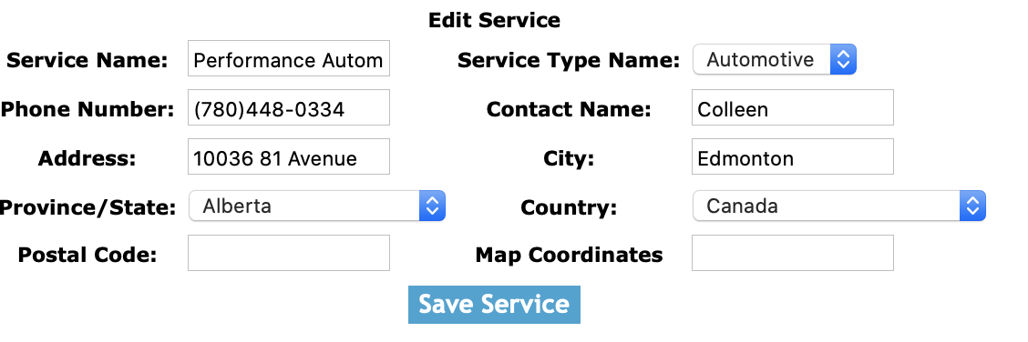 Once you have looked up service, you will be on the edit service screen. Here you can change the service name.
