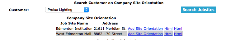 Click the 'Search Job sites' button the company site orientations, the company site orientations for the selected customer$s jobsites will load.