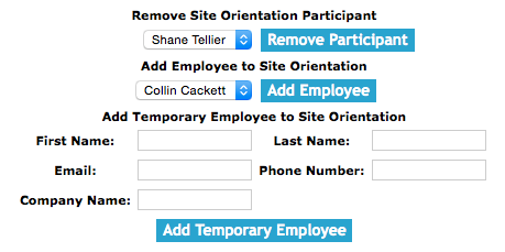 Participant: The site orientation participants populate the select box. Only employees that have been added to the site orientation can be removed.