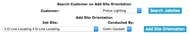 Click the 'Search Jobsites' button. The Job Site select box on the Add Site Orientation section will load with only the jobsites of the selected customer.