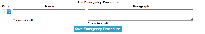 Click the 'Save Emergency Procedures' button to ensure that any information changed is saved in the system.
