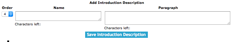 and other important people. For each entry users can add a section name and then a explanation paragraph and the order of which the introduction paragraph will appear.