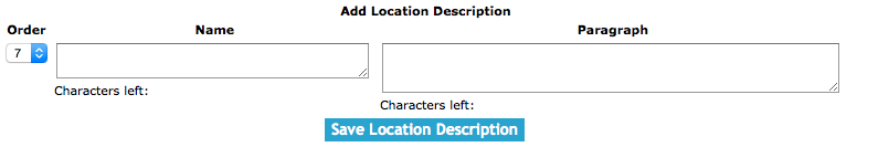 It should a good overview of what the location description will talk about. The character limit of this field is 100.