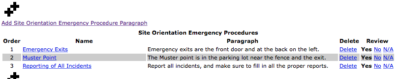 To add a new paragraph click, the 'Add Site Orientation Emergency Procedure Paragraph'.