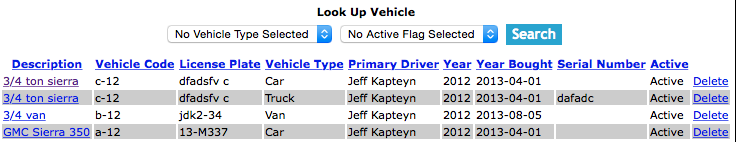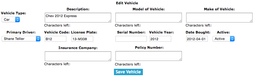 To add a new vehicle click the “Add Vehicle” link. A new window will appear.