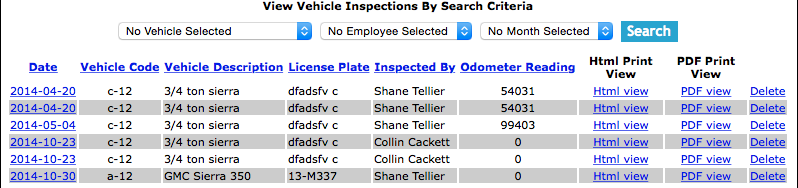 vehicle inspection report. The vehicle inspection can be setup to be done on a