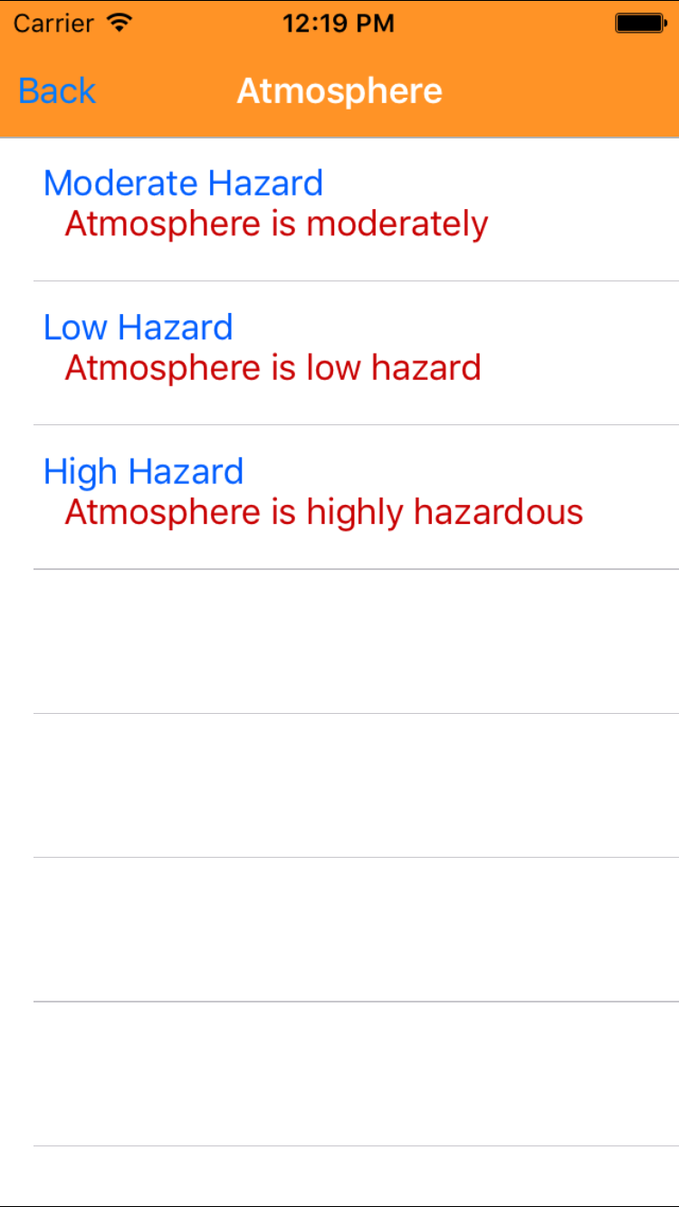 - Tap the desired atmosphere to select it or tap Back button in the top left corner to leave the Atmosphere field unchanged.