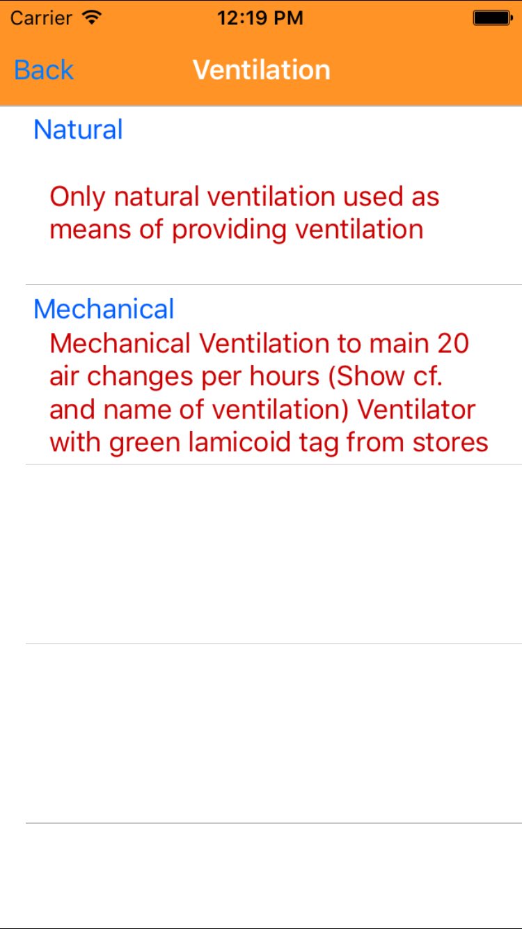 - Tap the desired ventilation to select it or tap Back button in the top left corner to leave the Ventilation field unchanged.