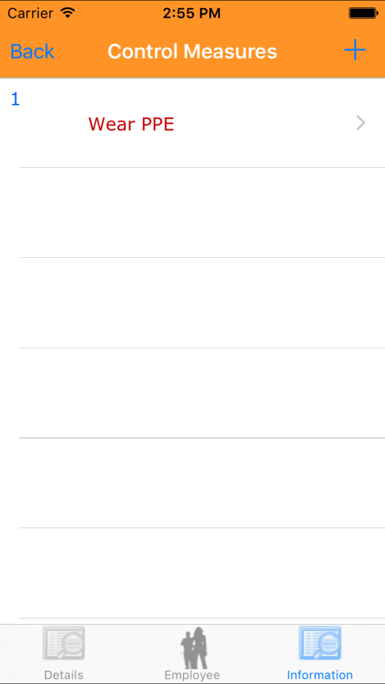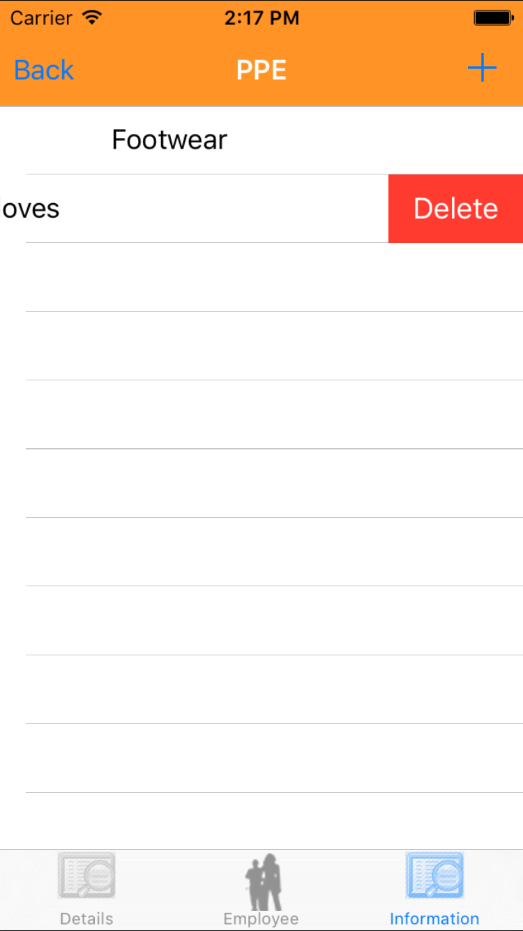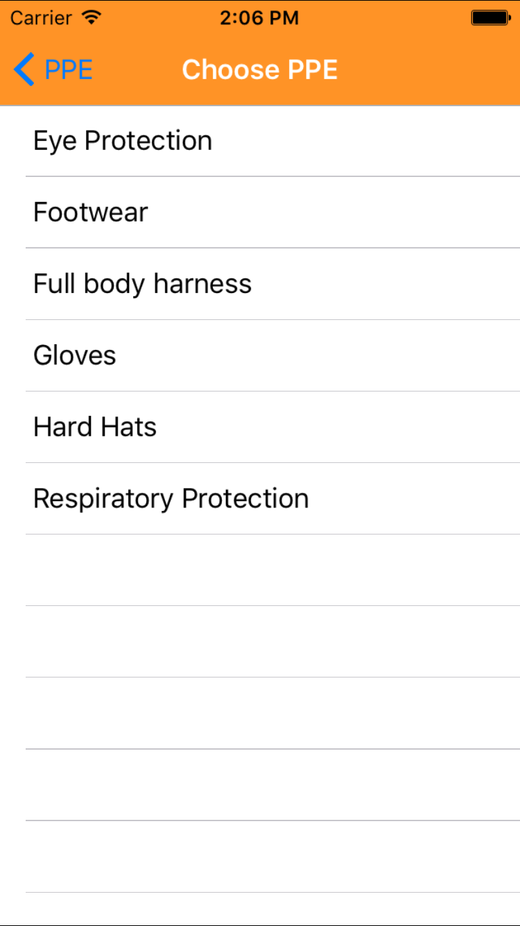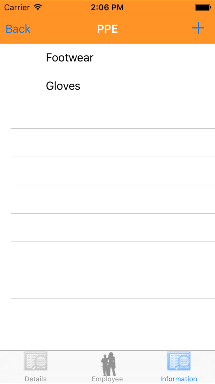 - Tap the + icon in the top right corner to open the Personal Protective Equipment list.