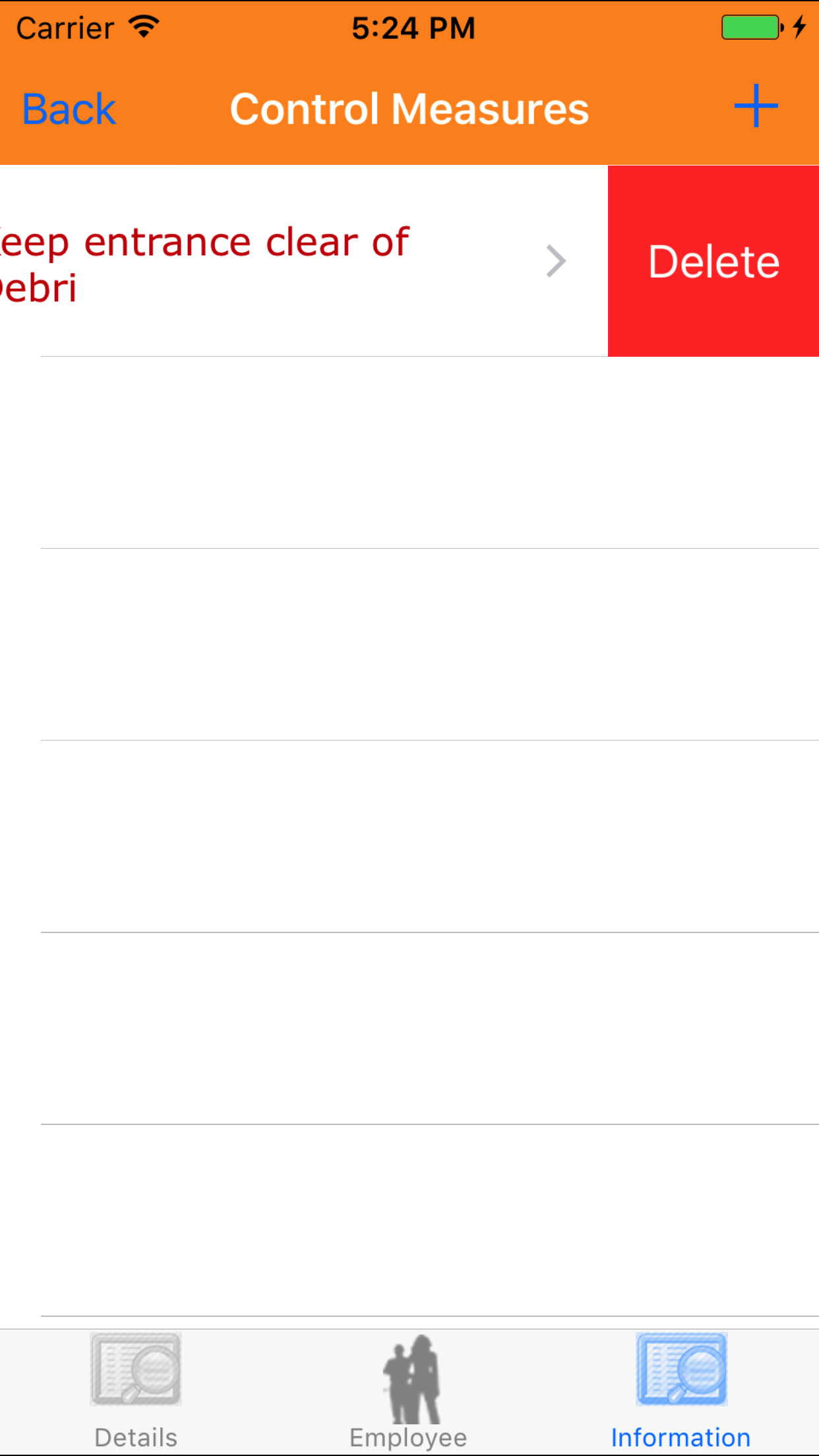 - Swipe from the right edge to the left to bring up the delete button for the control measure.