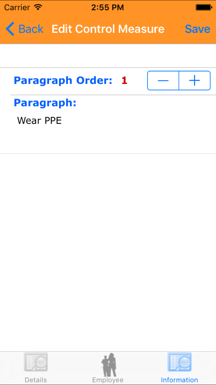 - Paragraph: Enter the description of the control measure.Paragraph is a required field. The character limit of this field is 500 characters.