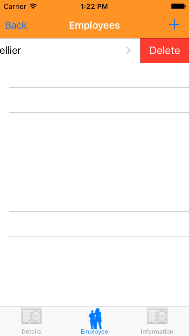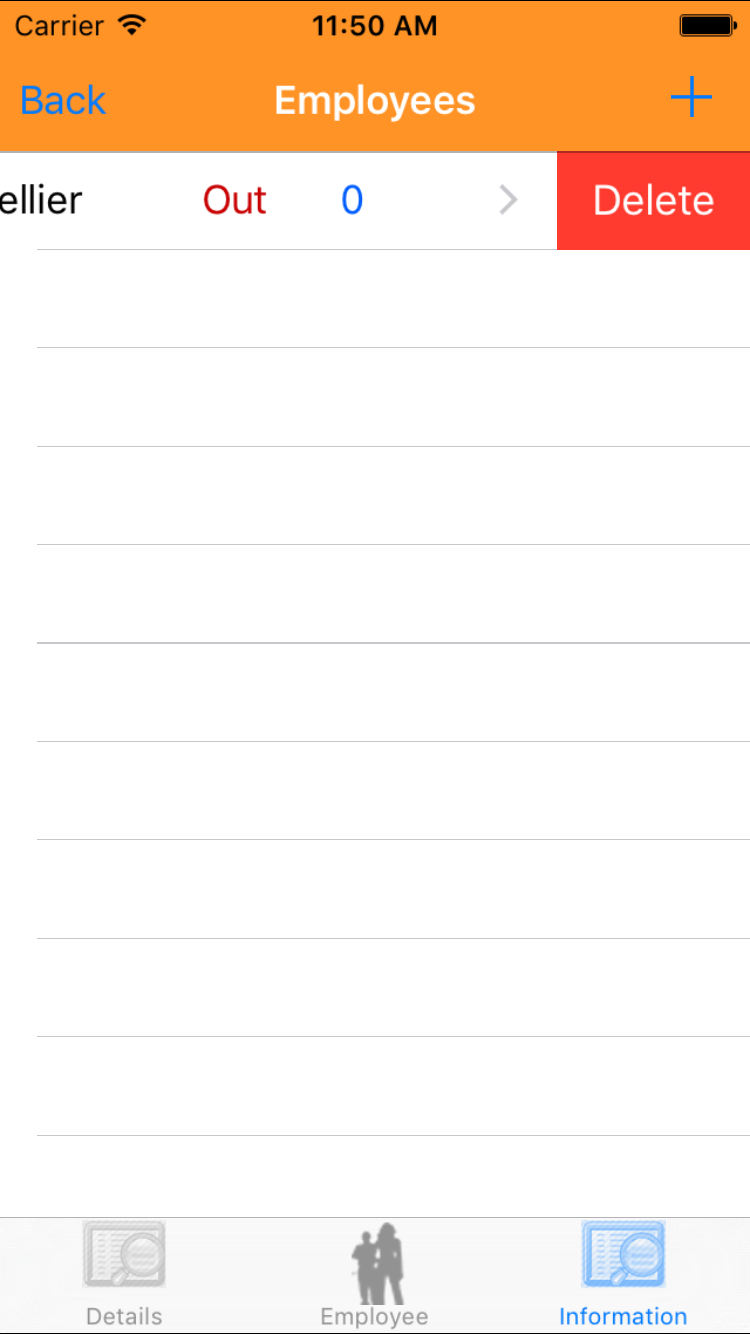 - Swipe from the right edge to the left to bring up the delete button for the employee entry log.