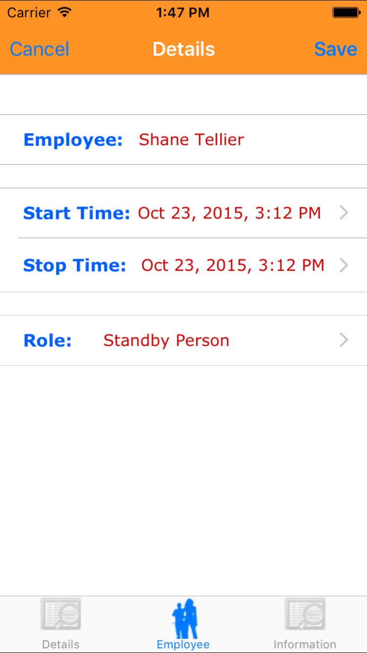- Return to the Edit Confined Space Entry Report screen by either tapping Save in the top right corner to select the highlighted date or tapping Cancel in the top left corner to leave the Date/Time field unchanged.