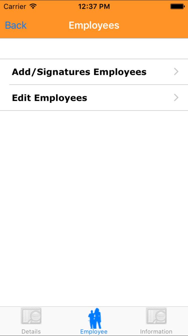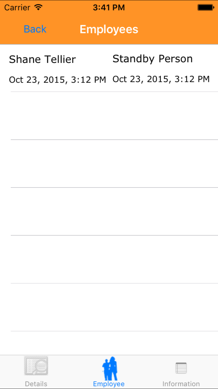 - Tap the second tab, the Confined Space Employee’s tab of the History view. This loads with the employee’s names and their roles.