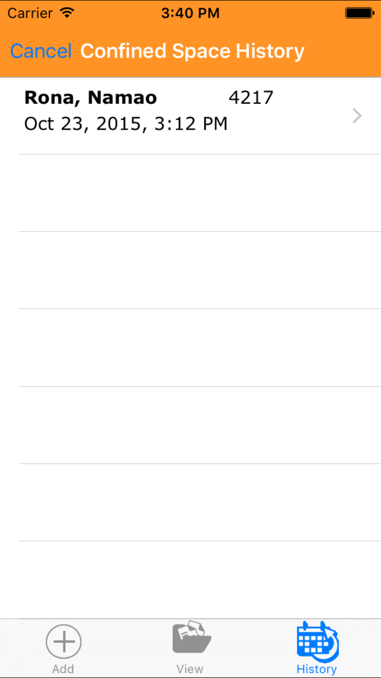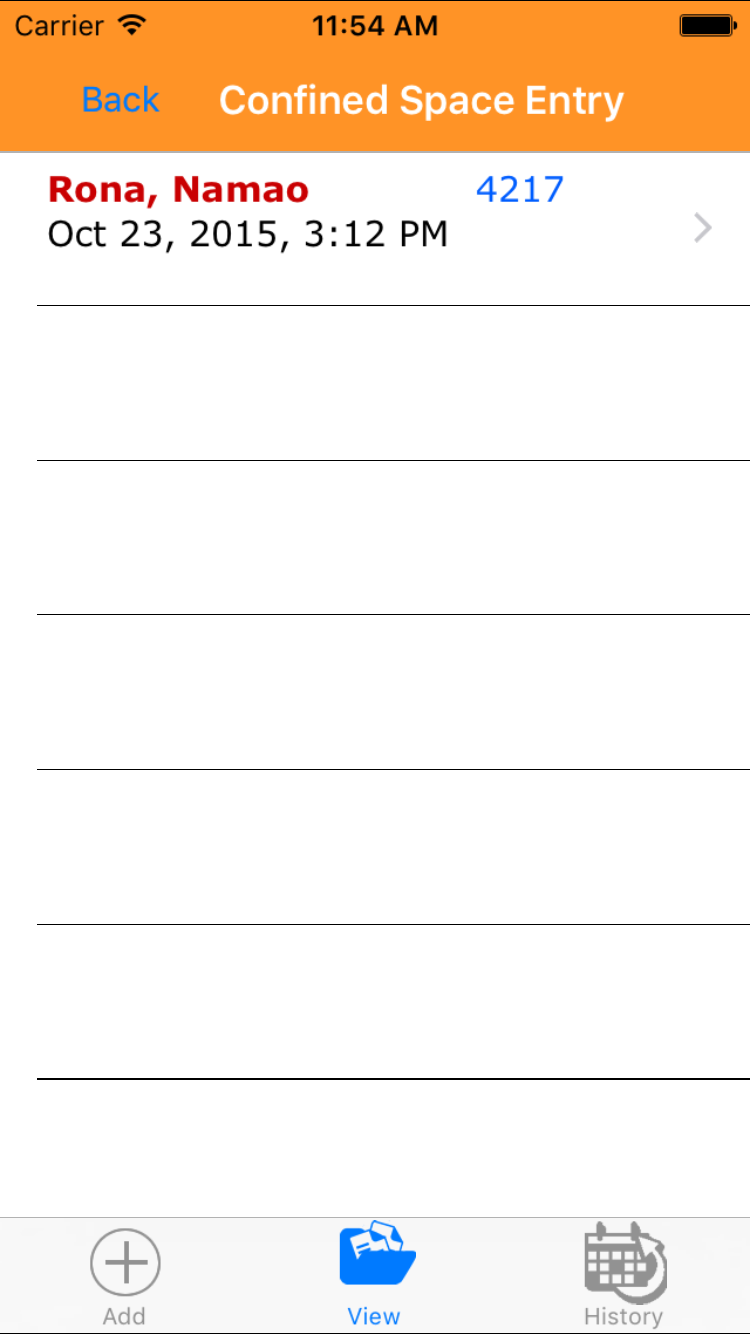 After Confined Space Entry Reports have been closed out, they will be available to look at through the History view on the iPhone Application