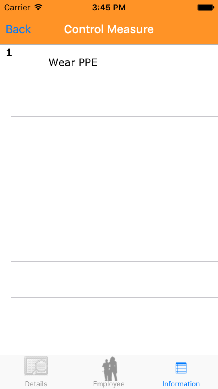 - Tap the Control Measure button to load the list of control measures added to the confined space entry report.