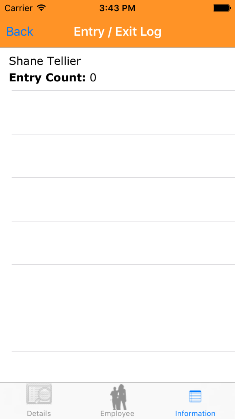 - Tap the Add Entry Count button, to changed the status of the employee. Tapping the add entry count will increase the count.