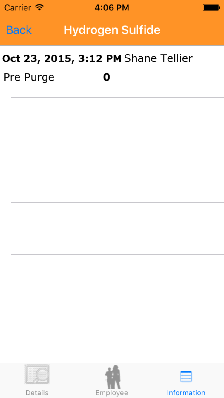- Tap the third tab, the Information tab of the History view. This loads the with the follow sections: