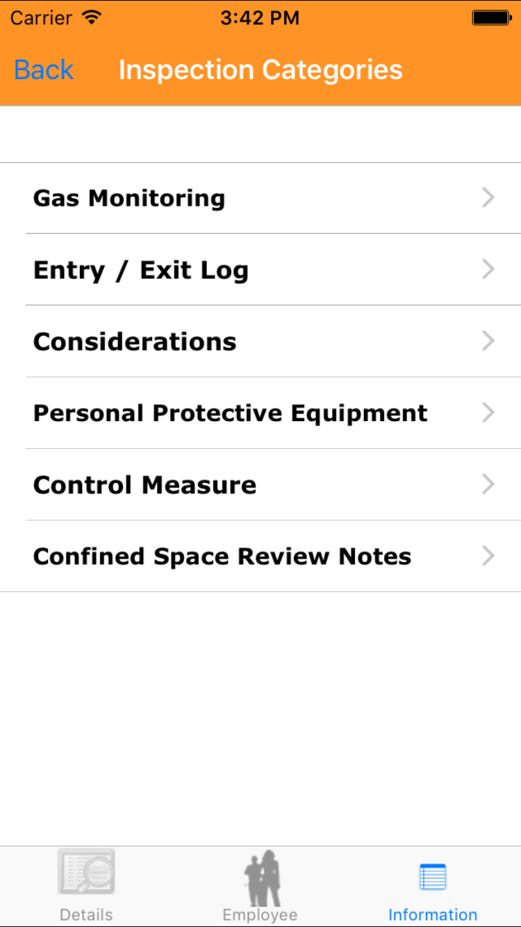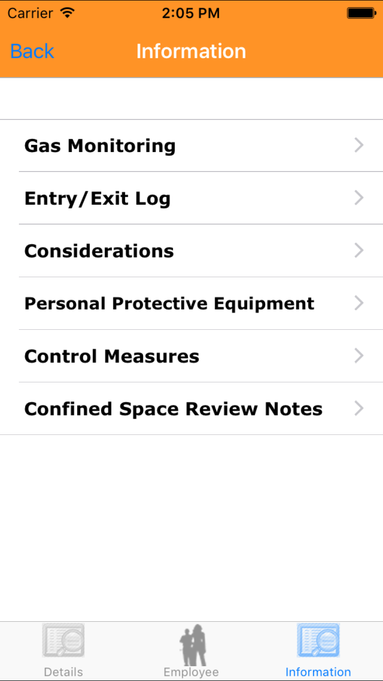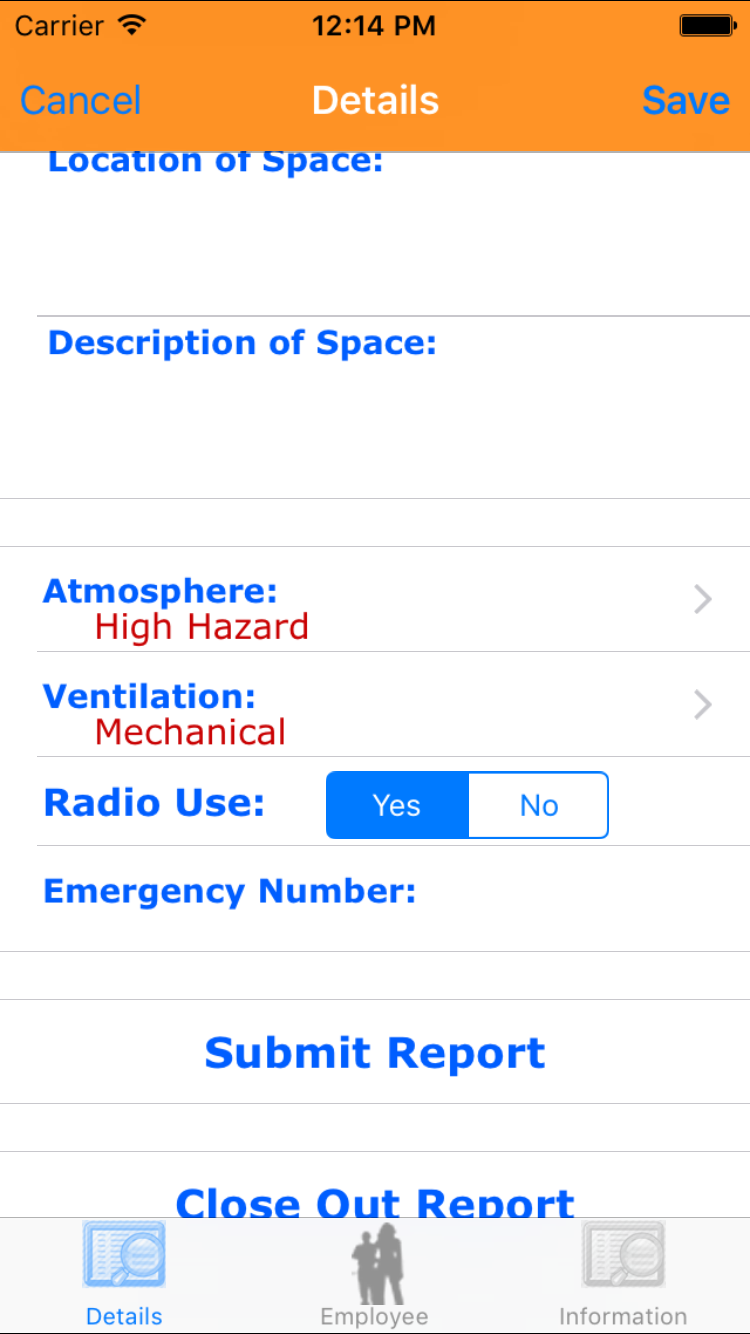 - This opens Confined Space Entry screen, which gives the user a explanation of confined space entry reports. Tap on