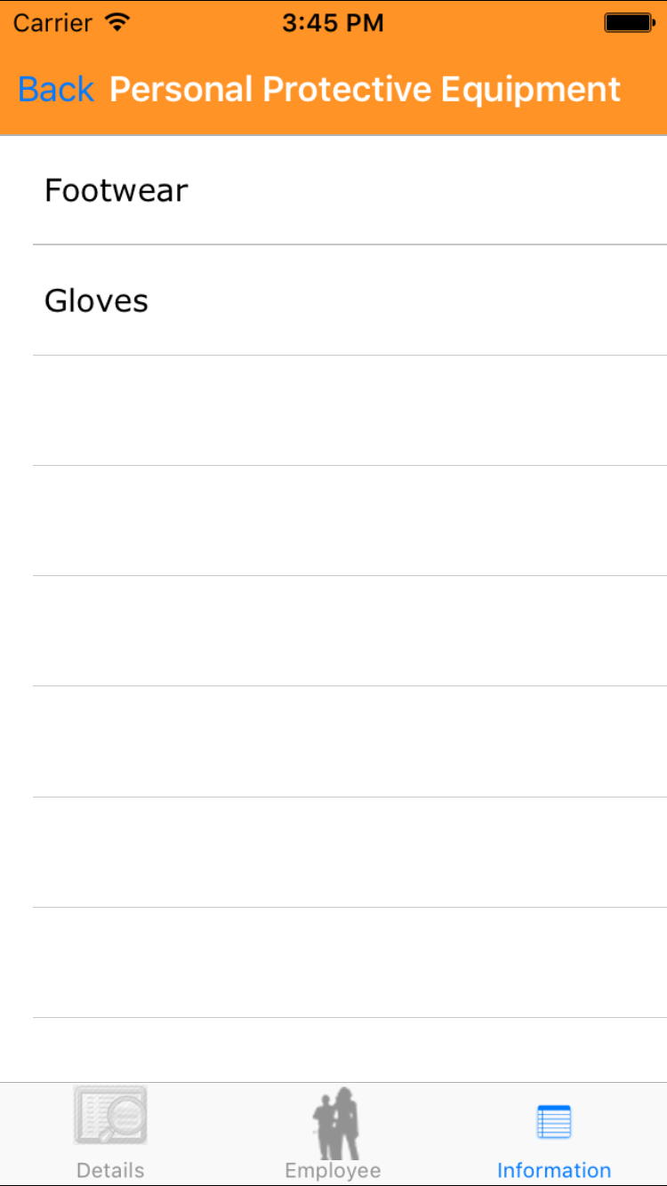 - Tap the Personal Protective Equipment button to load the list of personal protective equipment that should be worn during the entry to the confined space.
