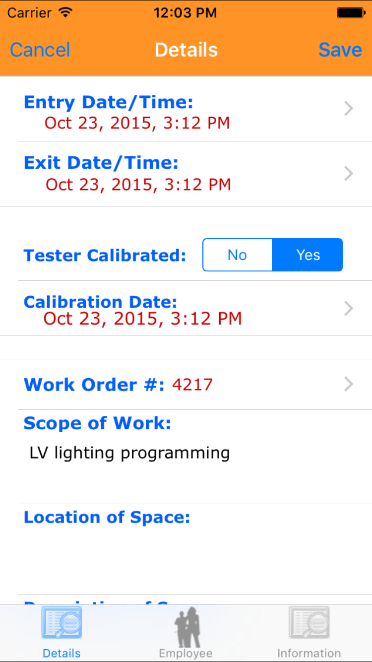The first step in completing a Confined Space Entry Report is entering the details of the job itself - scope of work, location, etc.