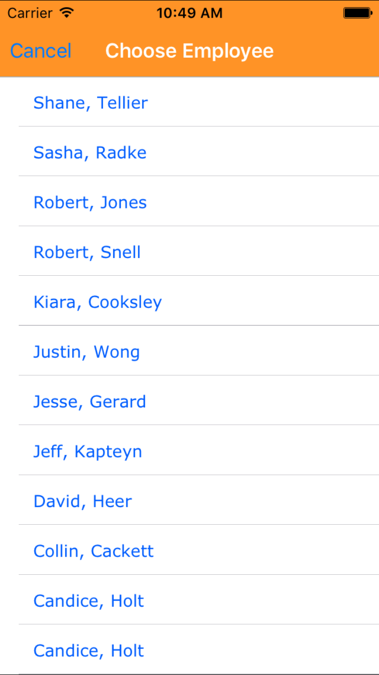 To Search Employees: Pull down on the list view, the search is defaulted to search by last name.