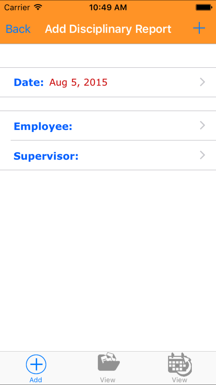 - Tap the + icon in the top right corner to add the Disciplinary Report.