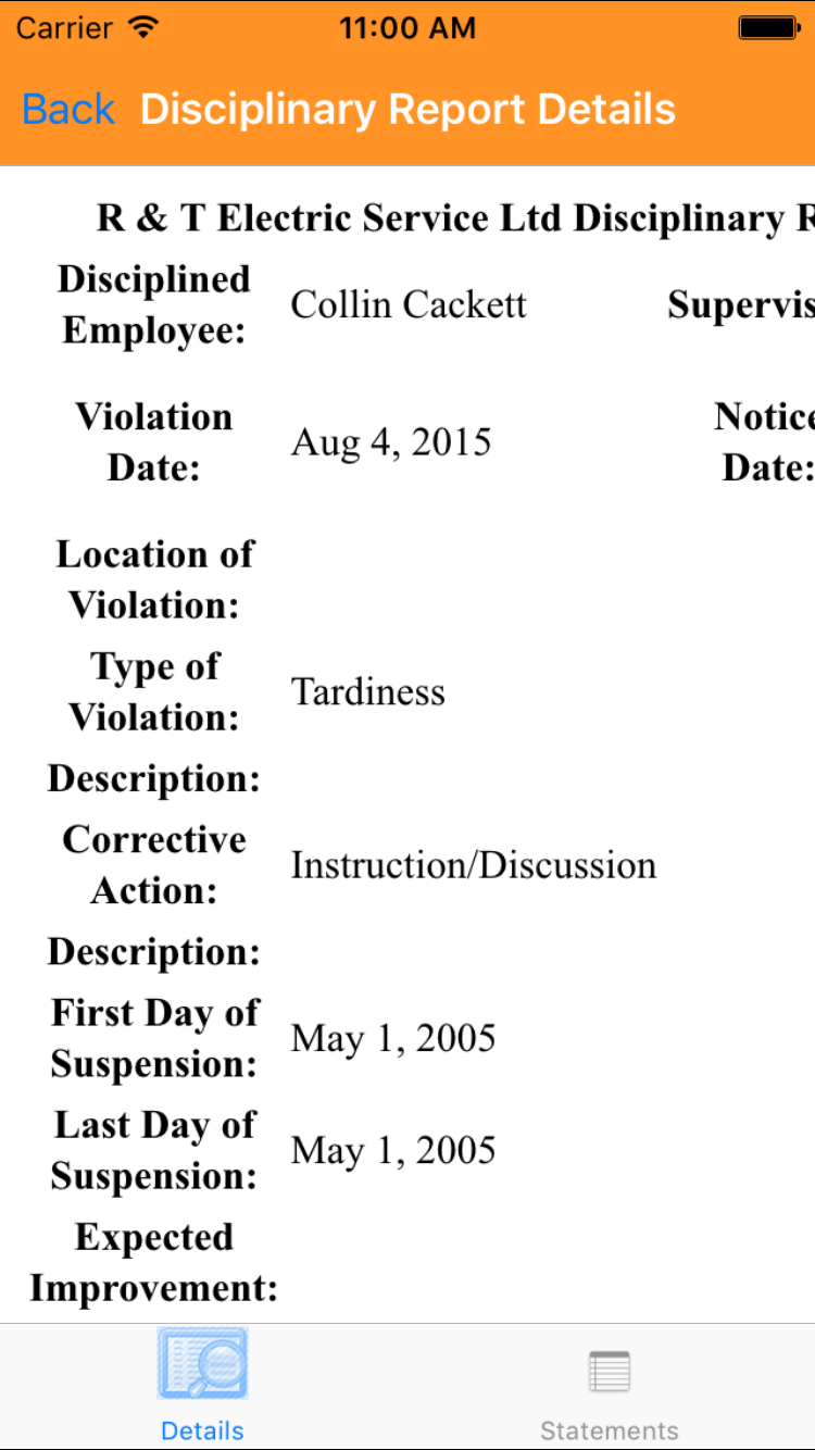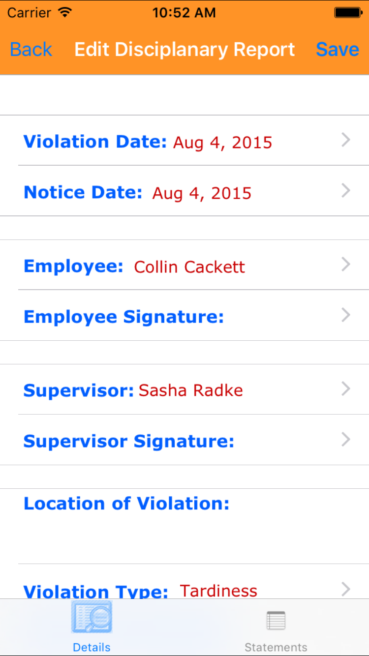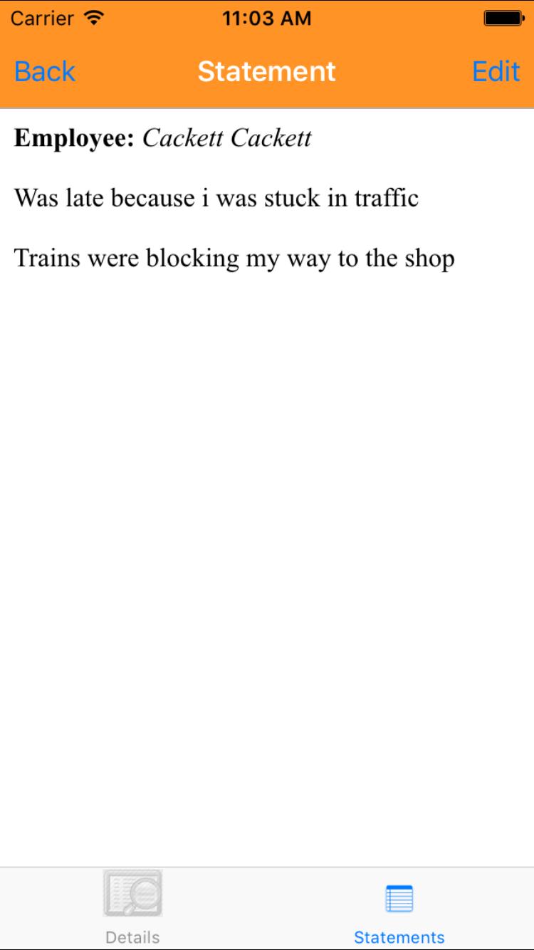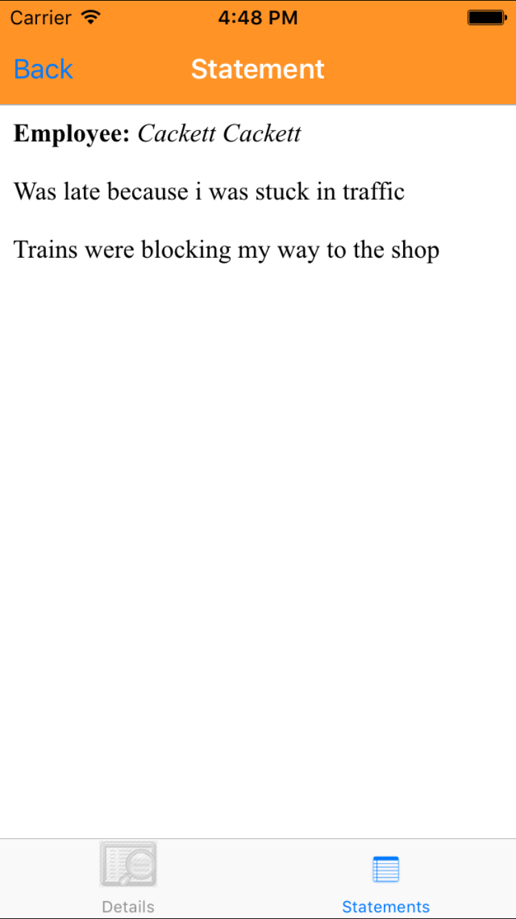 - Tap on the employee you would like to add a statement for. This will take you back to the statements screen.