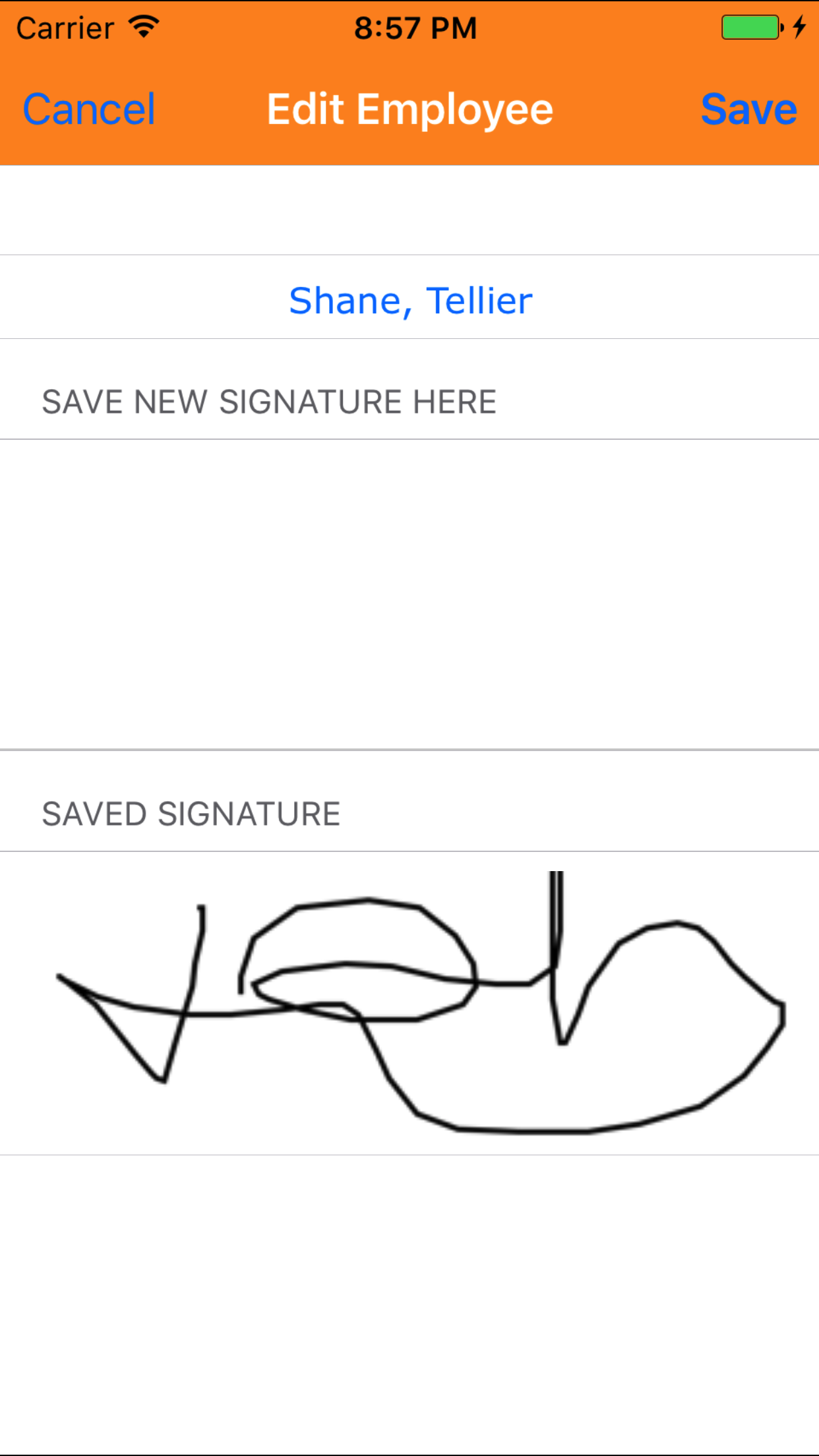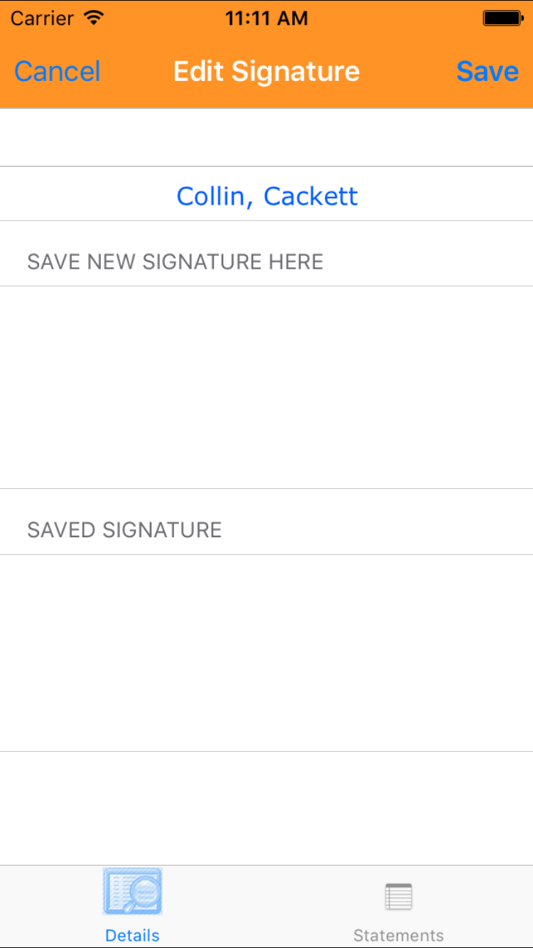 - Tap Save in the top right corner of the screen to update the Saved Signature field.