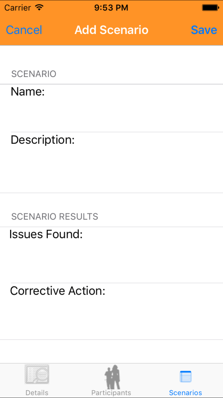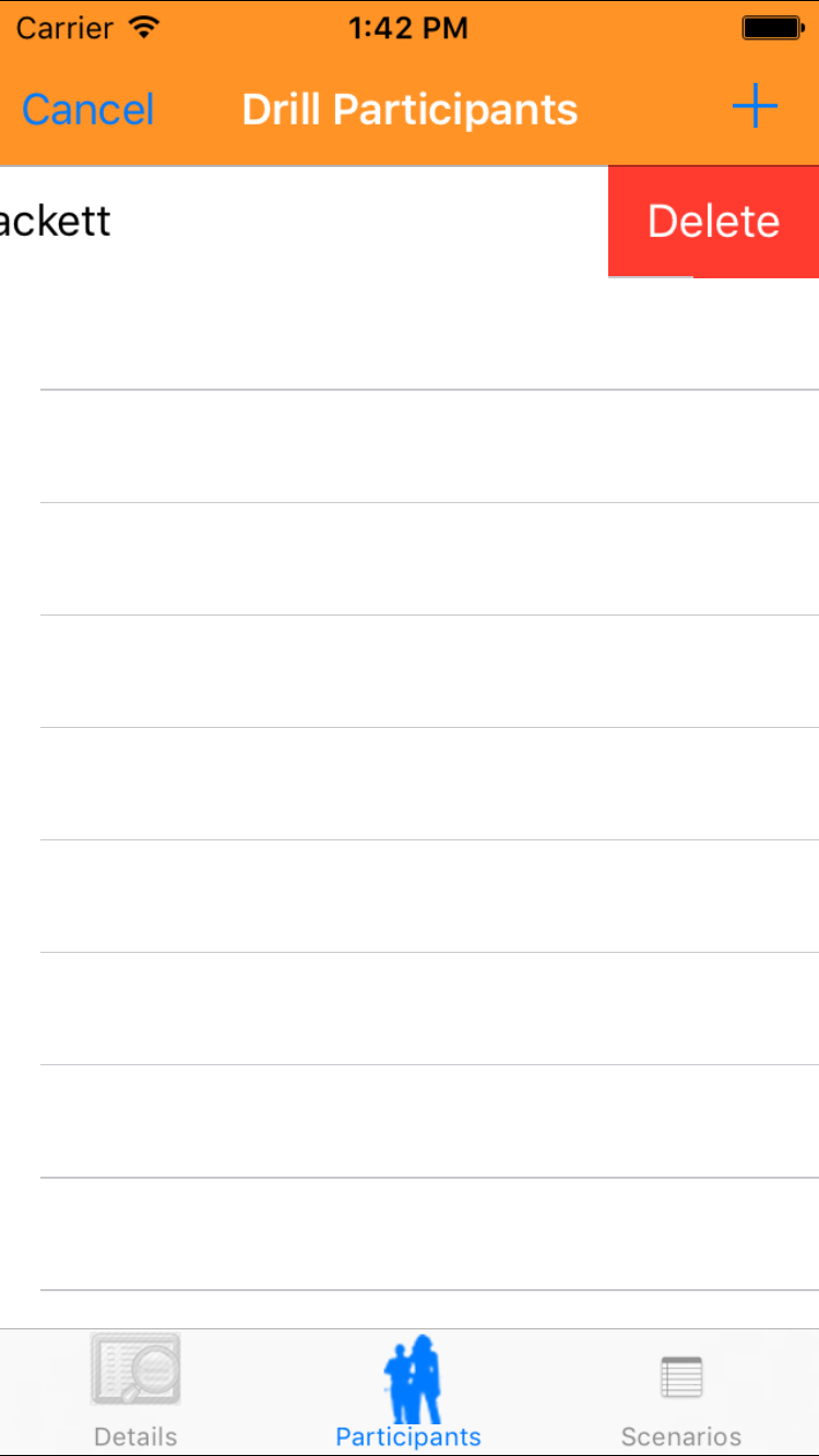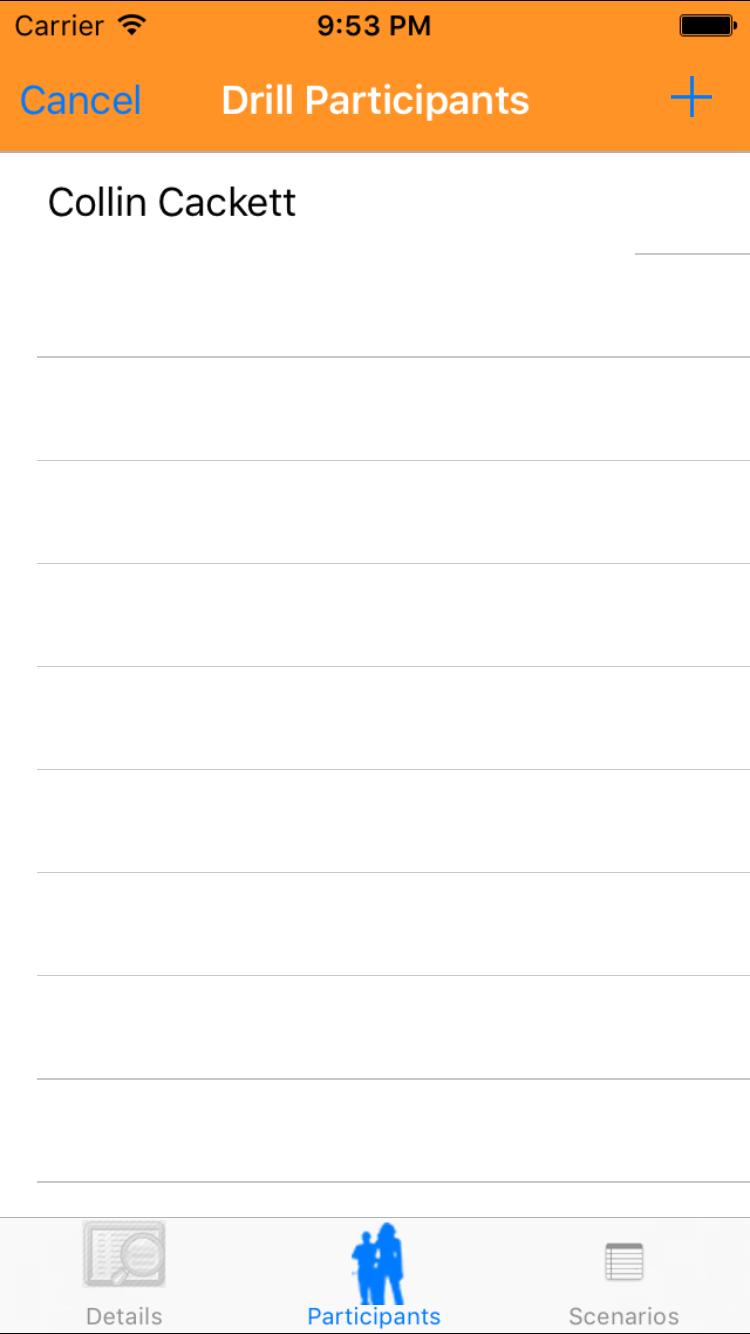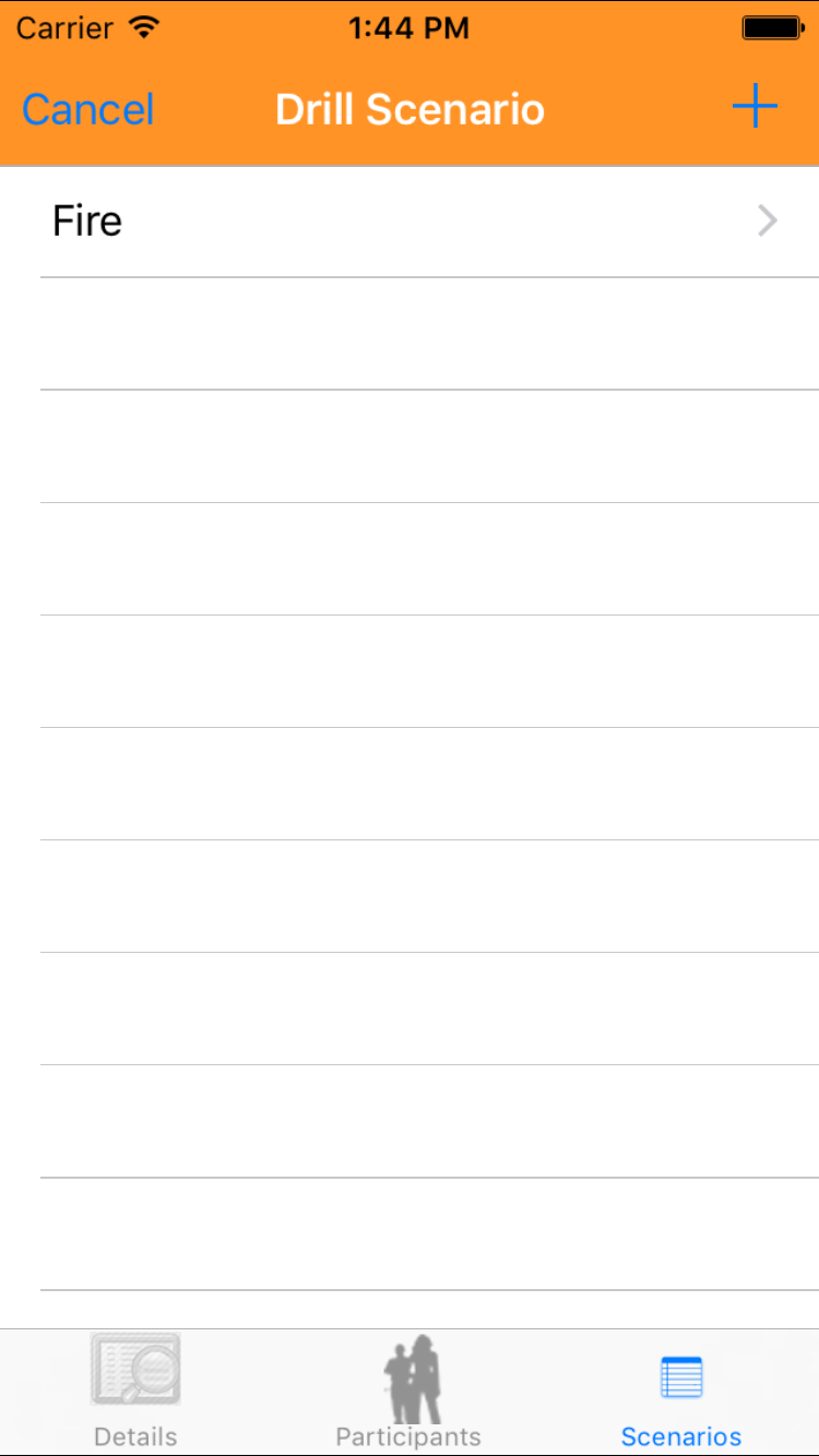 - Tap the + icon in the top right corner to open the Add Drill Scenario screen.