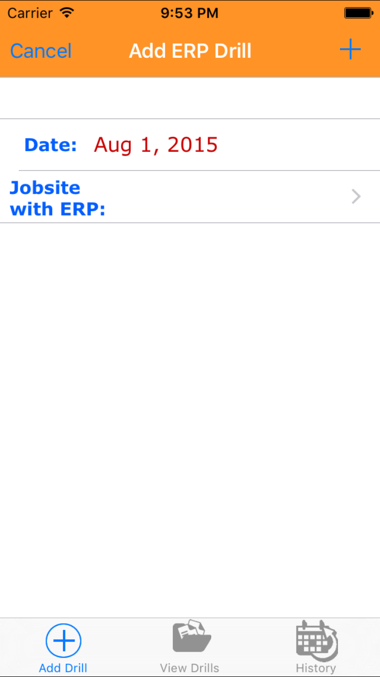 - Tap the + icon in the top right corner to add the Emergency Response Plan Drill.